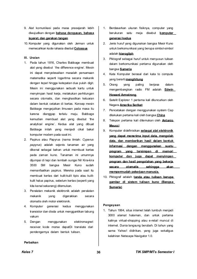 Berikut beberapa materi pelajaran tik (teknologi informasi dan komunikasi) untuk jenjang smp/mts kelas vii (tujuh) yang menggunakan kurikulum k13 mulai dari semester 1 (ganjil) s.d. Materi pelajaran tik kelas 7 smp/mts. Part 2 (perbandingan dan skala) kelas 7 semester 2#soaldanjawabanmatematika #matematikakelas7semester2untuk lebih menguasai materi ini kalian harus rajin. Semoga dapat berguna bagi kamu dalam belajar serta bermanfaat. Tugas kimia (kelas xi, semester ii). Ulangan tengah semester (pts) menjadi salah satu penilaian hasil belajar selain bentuk penilaian lainnya, seperti penilaian ulangan harian, penilaian tugas, dan penilaian akhir semester. Rangkuman tik smp/mts kelas 7 semester 1 bab 1 berbagai jenis peralatan teknologi informasi dan komunikasi menurut waktu pemakaiannya, peralatan teknologi hal ini dikarenakan komputer dibuat hanya untuk menyelesaikan suatu tugas tertentu. Semester 2 (genap) yang dapat di pelajari dengan. Silabus tik kelas vii semester 1. Proses memasukkan data c salah satu tugas dari teknologi informasi dengan komunikasi dalam perbankan ialah …. Keanekaragaman dalam masyarakat menjadi tantangan tersendiri, apalagi jika tumbuhnya perasaan kedaerahan dan kesukuan yang berlebihan bisa saja mengancam keutuhan bangsa dan negara. Jika terdapat kesalahan link soal uts smp/mts kelas 7 semester 2/genap , saya berharap sobat cara sunda bisa mengkonfirmasikan di kolom komentar. Menggunakan intenet untuk memperoleh informasi.