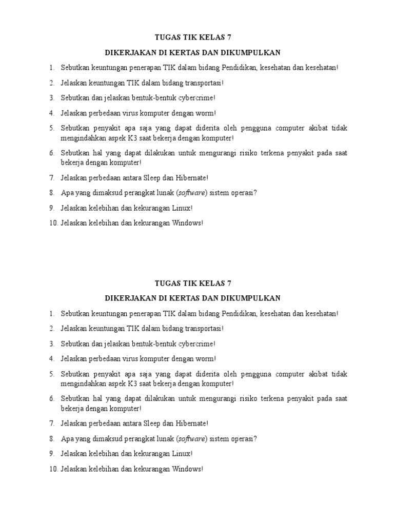 Download tutorial tugas tik kelas 7.txt diupload septi ari pada 23 march 2020 di folder document 447 bytes. Elaborasi dalam kegiatan elaborasi, guru: 1 mendemostrasikan akses internet sesuai dengan prosedur. 87 responses to tugas tik kelas 7 semester 2 pertemuan pertama. Soal ujian praktek tik smp microsoft word. Jika terdapat kesalahan link soal uts smp/mts kelas 7 semester 2/genap , saya berharap sobat cara sunda bisa mengkonfirmasikan di kolom komentar. Di samping itu, quercetin juga dapat mengurangi peradangan, melawan alergi dan dapat mencegah penyakit jantung koroner. Orang sebagai pengguna komputer b. Tik kelas 7 semester 2 doc, soal uts tik kelas 7 semester 1 essay, soal uts tik. Pendidikan you can leave a comment or trackback from your own site. Karena tidak akan berguna soal uts smp/mts kelas 7 semester 2/genap ini kalau kamu biarkan saja. 160 kelas vii smp/mts semester 2 membantu menurunkan tekanan darah dan mendukung sistem kekebalan tubuh atau antioksidan yang sangat tinggi. Tutorial penyelesaian tugas tik kelas 7.
